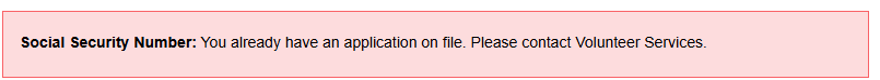 If you receive this message, it probably means you applied and/or started your training over 30 days ago. If you receive it, then call Volunteer Services at 936-437-7243 or 936-437-7086.