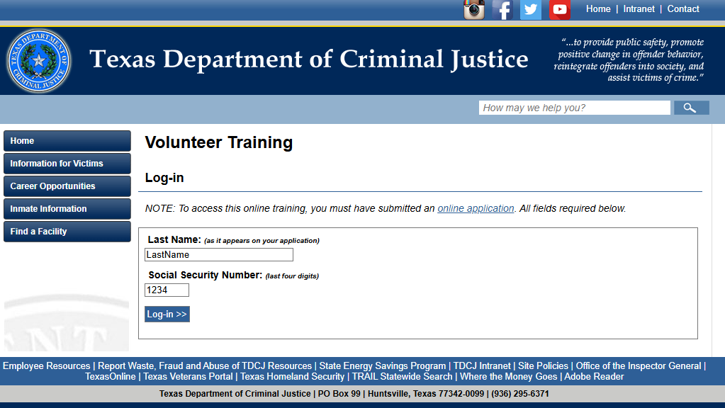 Please note that online TDCJ Volunteer Applications are not processed until the Volunteer Training is completed.